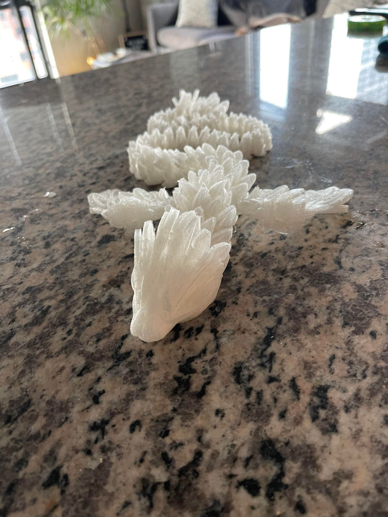 The articulated winged crystal serpent is 3D printed that is sure to be a blast for kids and adults! Featuring articulated joints and moving parts, this item will provide hours of fun.